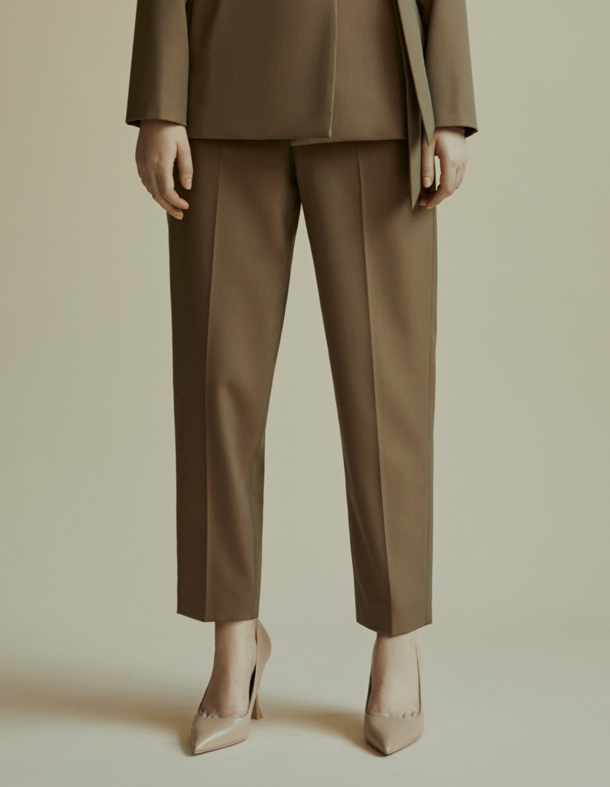 スラックスの裏地もトップスと同様の素材で、サラサラとした素材となっています。シルエットも太すぎず細すぎず、どんなトップスにも合わせやすいベーシックな雰囲気。